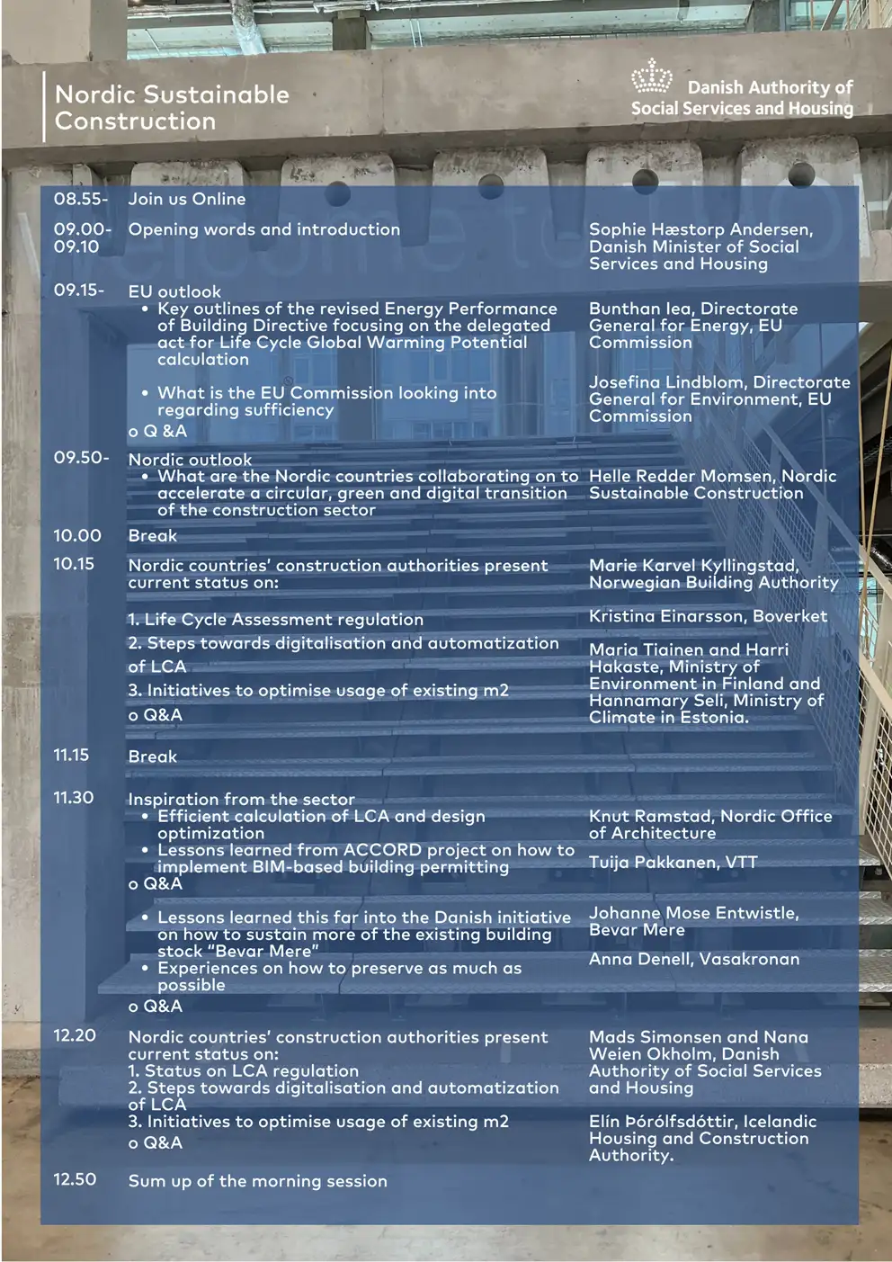 This year’s Nordic Climate Forum for Construction will be hosted by the Danish Authority of Social Services and Housing and the Nordic Sustainable Construction team.
